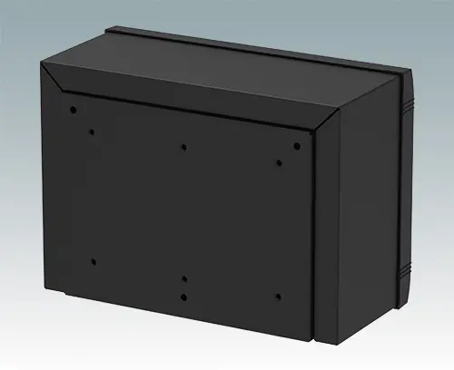Modern aluminum wall mount enclosure for indoor electronics equipment. The enclosure provides total access to the electronics during installation on the wall. Stylish design with die cast front bezel, top cover and 'L' shape rear panel. Order front panels separately.