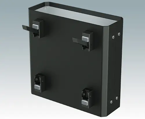Universal case feet with tilt legs for all types of plastic and metal enclosures with max. 0.016" (4 mm) wall thickness.