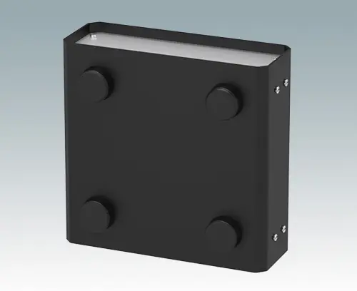 Stylish and modern case feet for fitting to any type of plastic or metal enclosure. Three part assembly with foot body, anti-skid TPE pad and self-tapping screw. Max. enclosure wall thickness 0.12" (3 mm) with screws provided (alternative longer screws can be supplied for larger wall thicknesses). Simply drill three holes per foot in the enclosure panel - see drawings for drilling details. Call us for a free sample.