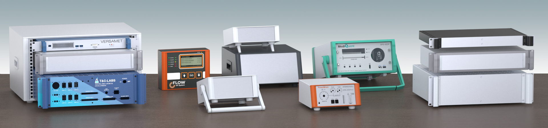 METCASE manufactures an extensive range of metal enclosures for desktop, wall mount, portable and 19" rack mounted electronics equipment. They are manufactured from high quality aluminum. Their modern and ergonomic design makes them suitable for a wide variety of electronics applications including test and measurement equipment and control systems. METCASE metal enclosures can be supplied fully customized with all the necessary modifications required for fitting the PCBs, connectors, displays and controls. Fully bespoke enclosures can also be produced on demand from standard and bespoke fabricated case parts.