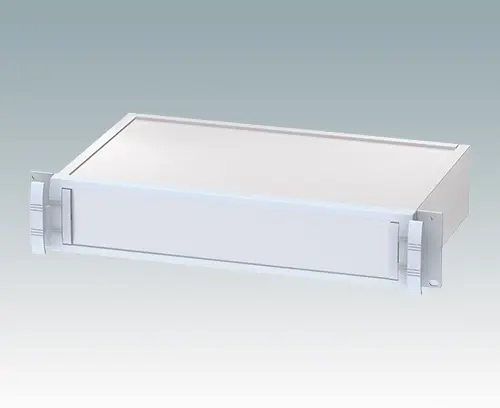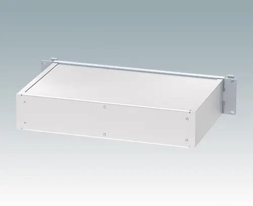 Modern and robust 19" rack case with integrated 'comfort handles'. All aluminum design with attractive die cast front bezel, extruded side panels with internal PCB/chassis guide rails, rear panel and flat top and base panel. Open front panel aperture means the case does not have to be removed from the rack in order to access the electronics. Base panel is punched to accept accessory tilt feet. Order front panels separately.