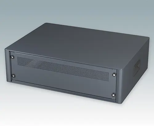 Modern and highly attractive 19" instrument enclosure for mounting 3U subracks (84HP), chassis or front panels. Conforms to DIN 41494 & IEC 297-1. Stylish front and rear bezels are fitted to the aluminum case body. Clip-on trims at the front and rear hide the assembly screws giving a very professional appearance. All case panels fitted with M4 threaded pillars for earth connection.