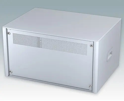Modern and highly attractive 19" instrument enclosure for mounting 6U subracks (84HP), chassis or front panels. Conforms to DIN 41494 & IEC 297-1. Stylish front and rear bezels are fitted to the aluminum case body. Clip-on trims at the front and rear hide the assembly screws giving a very professional appearance. All case panels fitted with M4 threaded pillars for earth connection.