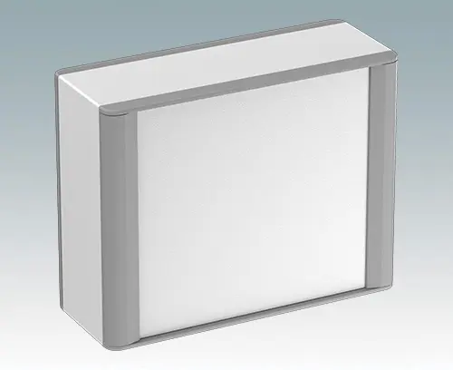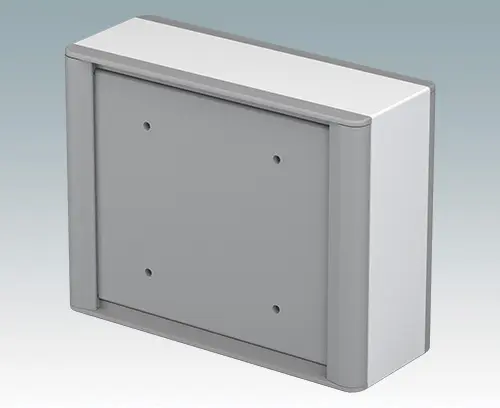 Modern and highly attractive aluminum instrument enclosure for fitting displays, touch screens and HMI electronics. VESA MIS-D 100 mounting points are provided on the rear panel for fitting the unit to a standard VESA control arm or mounting bracket. Stylish front and rear diecast bezels are fitted to the case body. Clip-on trims at the front and rear hide all the assembly screws, giving a very professional appearance. The base panel on the underside provides space for cable entry. M3 PCB mounting pillars are provided inside. The assembly extrusions also have M3 mounting holes and guide rails for fitting internal plates. M4 earth studs are fitted to all parts; some studs can also be used with retaining straps to hold the front/rear panels during maintenance. Front panels are sold separately. Accessories include a wall mounting kit, a pole mounting bracket and an internal mounting plate.