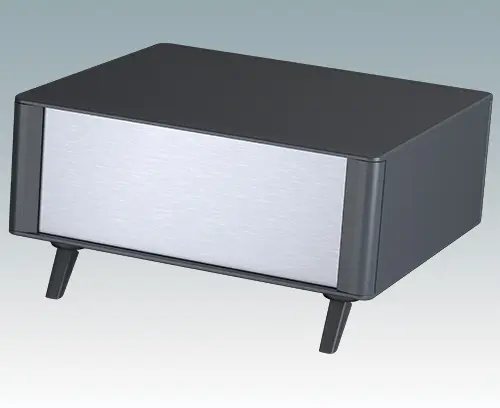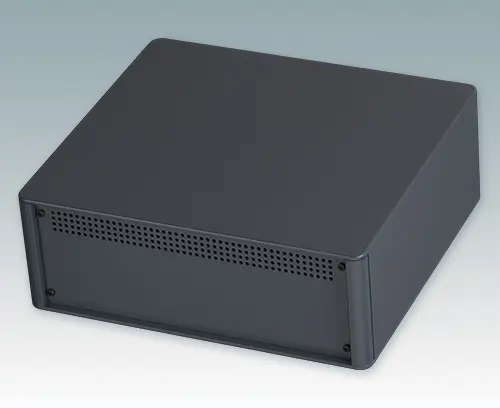 The case is supplied with a rear panel and four ABS feet with tilt legs. Ventilation slots are provided in the base and rear panel. Order front panels separately.