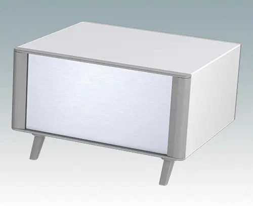 Modern and highly attractive instrument enclosure for desktop electronics. Stylish front and rear bezels are fitted to the aluminum case body. Clip-on trims at the front and rear hide the assembly screws and front panel screws, giving a very professional appearance. The pre-assembled internal chassis is supplied with four M3 PCB mounting pillars fitted in the base. The internal chassis can also be fitted with 7 slide-in PCBs using the accessory snap-in guide M6490010 (order 4 guides per PCB).