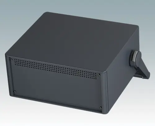 The case is supplied with a rear panel and four ABS feet with tilt legs. Ventilation slots are provided in the base and rear panel. Order front panels separately.