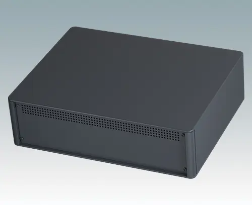 The case is supplied with a rear panel and four ABS feet with tilt legs. Ventilation slots are provided in the base and rear panel. Order front panels separately.