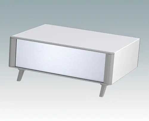 Modern and highly attractive instrument enclosure for desktop electronics. Stylish front and rear bezels are fitted to the aluminum case body. Clip-on trims at the front and rear hide the assembly screws and front panel screws, giving a very professional appearance. The pre-assembled internal chassis is supplied with four M3 PCB mounting pillars fitted in the base. The internal chassis can also be fitted with 4 slide-in PCBs using the accessory snap-in guide M6490010 (order 4 guides per PCB).