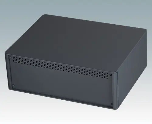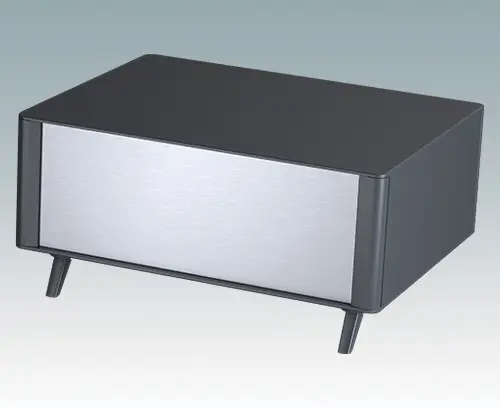 The case is supplied with a rear panel and four ABS feet with tilt legs. Ventilation slots are provided in the base and rear panel. Order front panels separately.
