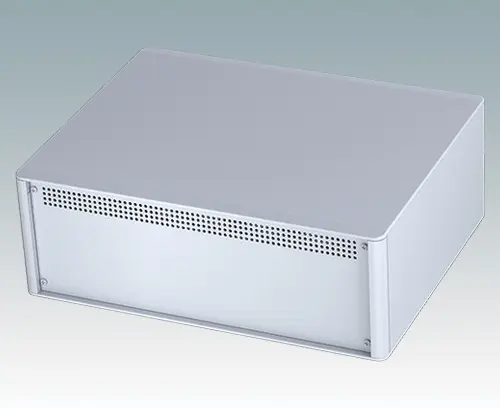 The case is supplied with a rear panel and four ABS feet with tilt legs. Ventilation slots are provided in the base and rear panel. Order front panels separately.