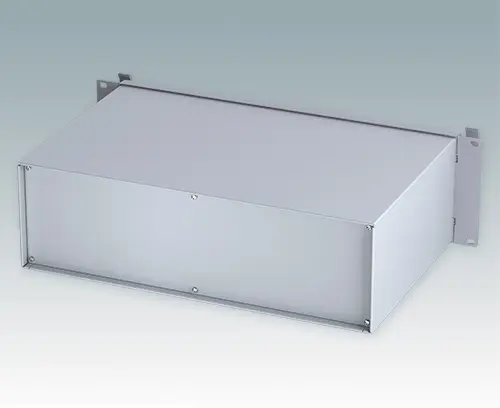 Modern high quality 19" rack case with integrated 'comfort handles'. All aluminum design with highly attractive front bezel and fabricated case body. Removable base and rear panels for easy access. Open front panel aperture means the case does not have to be removed from the rack in order to access the electronics. Base panel is punched to accept accessory tilt feet. Order front panel separately.